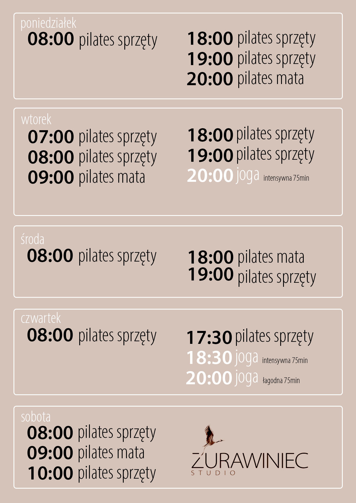 | 18:00 | Marta | Pilates sprzęty |